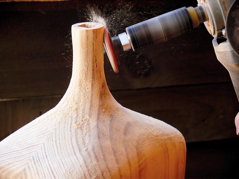 Il mandrino ruota sempre alla stessa velocità ed è indipendente dalla velocità della smerigliatrice angolare. Di conseguenza, varie forme e curve vengono levigate in modo uniforme. Durante questa applicazione si producono polveri sottili. Si raccomanda pertanto l'uso di protezioni per le vie respiratorie e per il viso.