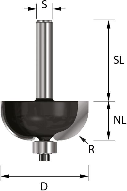 Fresa a raggio convesso a doppio taglio con cuscinetto a sfera sostituibileØ 9,5 mm, se non diversamente specificato. Ideale per la lavorazione dei bordi.
