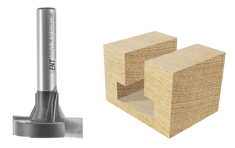 Le frese per scanalature a T sono utilizzate per fresare scanalature a T con la fresa verticale. Le scanalature vengono utilizzate per viti a testa esagonale con filettatura metrica o per dadi scanalati. In questo modo si elimina la necessità di guide profilate. Le battute possono essere utilizzate direttamente nel materiale. Le frese per scanalature a T sono ideali per fresare le rientranze nelle cornici, per creare sospensioni a chiave o svasature per cavi elettrici.