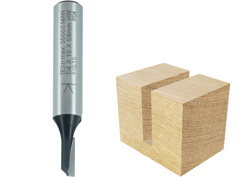 Di norma, tutte le frese per scanalatura hanno un tagliente di base, il che significa che la punta della fresa è rettificata e può quindi penetrare bene nel materiale. Tuttavia, esistono anche frese con uno speciale tagliente di base. Il risultato della fresatura mostra quindi un fondo della scanalatura fresato in modo molto pulito. Questo è importante quando la scanalatura viene utilizzata come decorazione su un pezzo. L'aspetto è molto più gradevole.