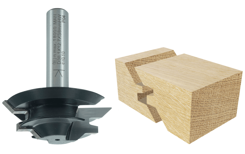 Una fresa per incollare (nota anche come fresa per giunzioni) viene utilizzata per incollare il legno . Il vantaggio rispetto ai normali giunti a colla è che aumenta la superficie del pezzo da lavorare grazie alla forma a V dei giunti a colla. Ciò conferisce al giunto incollato una maggiore stabilità. Le singole tavole non possono più scivolare durante l'incollaggio. A causa delle loro dimensioni, le frese per giunzioni dovrebbero essere utilizzate solo in una fresa verticale.