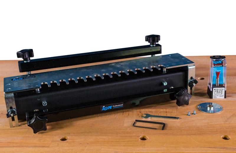 La fresa a dente FD300 è conveniente ed estremamente versatile! L'unità di base comprende un Sagoma di fresatura per denti a coda di rondine semicoperti (dimensione 12,7 mm) e un manicotto di copiatura corrispondente. Le frese verticali corrispondenti devono essere ordinate separatamente.