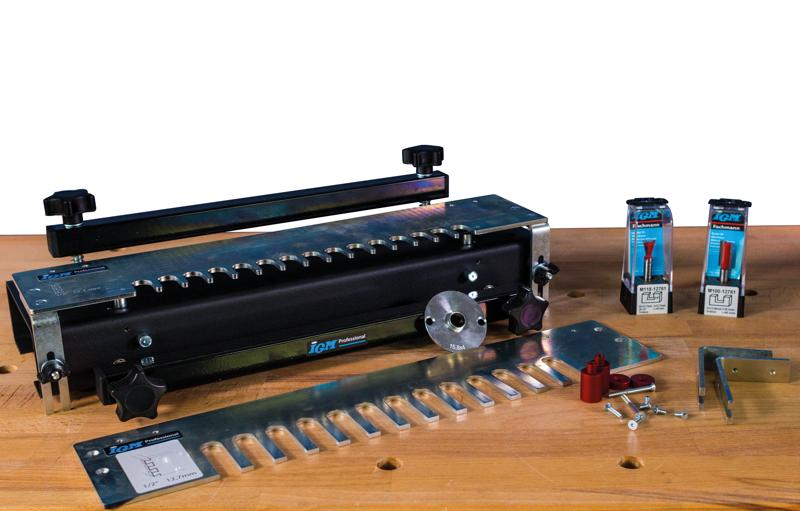La fresatrice a dente FD300 ha una larghezza di lavoro di 305 mm e offre un'ampia gamma di opzioni di applicazione grazie alle sue diverse sagome. Il dispositivo base qui elencato, comprensivo di sagoma di fresatura e manicotto di copiatura, può essere utilizzato per fresare denti a coda di rondine seminascosti (dimensione 12,7 mm).