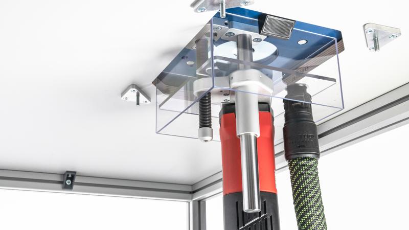 Regolazione agevole dell'altezza, comodo cambio della fresa dall'alto e un ingegnoso Attacco di aspirazione. Grazie al design del sollevatore FML-BR, questo SOLLEVAMENTO der motore fresa è il compagno perfetto per un lavoro impegnativo e pulito sul banco fresa.