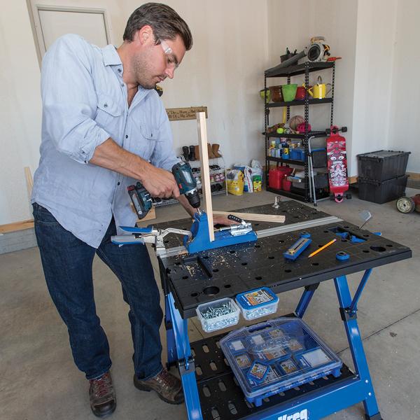 Con il banco da lavoro compatto e mobile di Kreg, potete spostare il vostro laboratorio ovunque vogliate. Il centro di lavoro mobile Kreg può essere montato e smontato in pochissimo tempo.