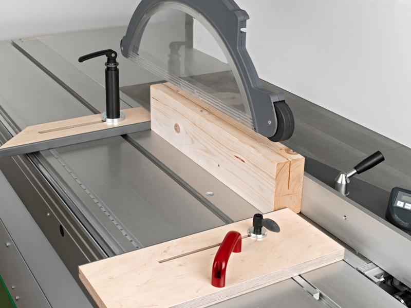 Il dispositivo di bloccaggio e serraggio del marchio RUWI è un efficace dispositivo di sicurezza sul lavoro che può essere montato e regolato in pochissimo tempo e senza attrezzi sulle normali Squadratrici. Tra i falegnami e i carpentieri, questo tipo di dispositivo di bloccaggio è noto anche come Fritz & Franz. Offre un elevato grado di sicurezza nel taglio di pezzi angolati, corti, stretti e cuneiformi di diverse dimensioni. Il dispositivo di bloccaggio è anche un aiuto indispensabile per i tagli obliqui lunghi.