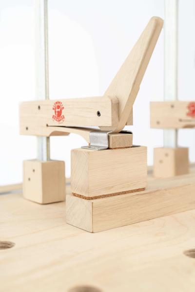 L'adattatore KLEMMSIA Basic e l'adattatore KLEMMSIA Basic Mini sono utilizzati per fissare i pezzi su banchi da lavoro e banchi da falegname. Entrambe le innovazioni si bloccano delicatamente. I morsetti in legno di alta qualità KLEMMSIA sono realizzati in legno di carpino non trattato.